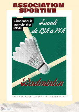AS Badminton tous les lundis 13h-13h50 au gymnase du collège.